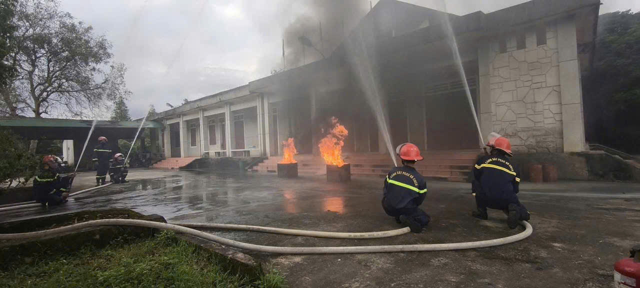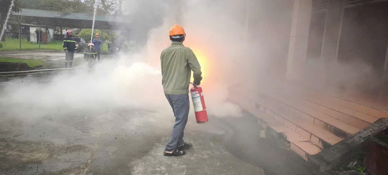 Hoạt động diễn tập tại Xí nghiệp chè Tây Sơn nhằm củng cố kỹ năng ứng phó, nâng cao khả năng phối hợp giữa lực lượng chuyên nghiệp và cán bộ công nhân viên trong xử lý kịp thời các tình huống cháy nổ thực tế tại cơ sở
