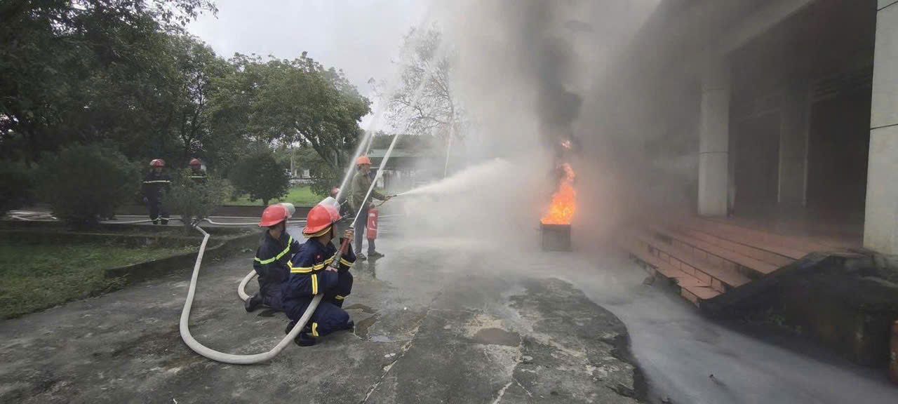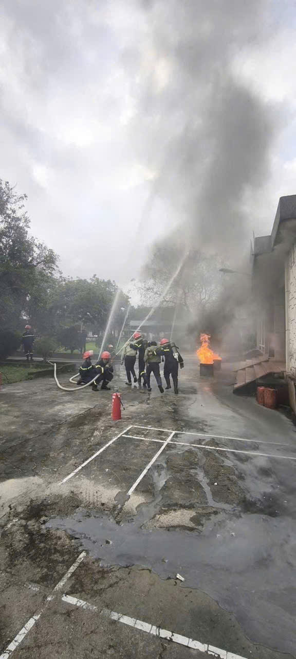 Trong tình huống giả định về một vụ cháy lan rộng từ kho nguyên liệu kèm khói độc dày đặc, đơn vị đã huy động 16 cán bộ, chiến sĩ cùng 02 xe chuyên dụng phối hợp với 30 nhân viên cơ sở tham gia diễn tập, triển khai 04 mũi tấn công đồng loạt, kịp thời dập tắt đám cháy và đưa 05 nạn nhân bị kẹt trong khu vực nguy hiểm ra ngoài an toàn.
