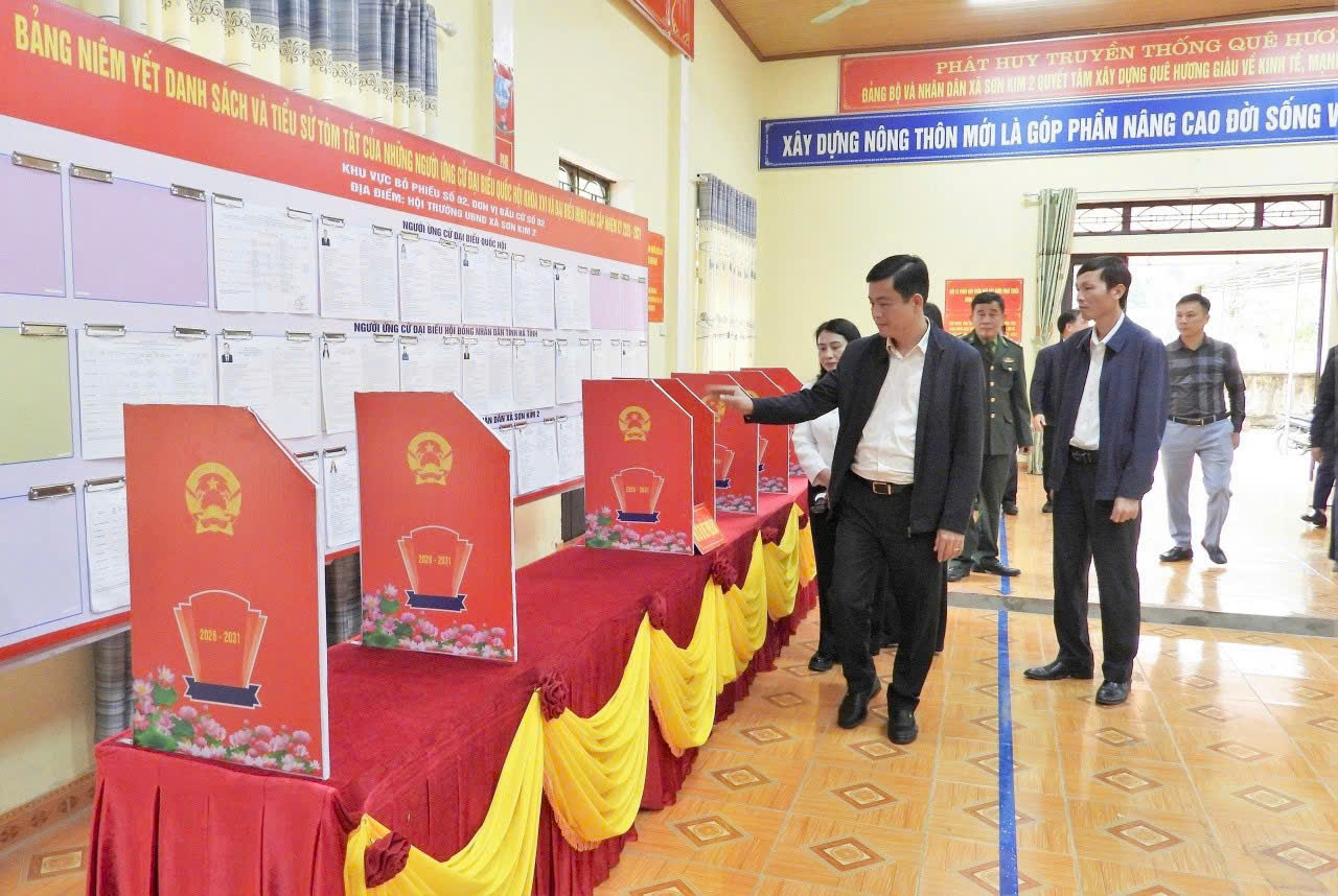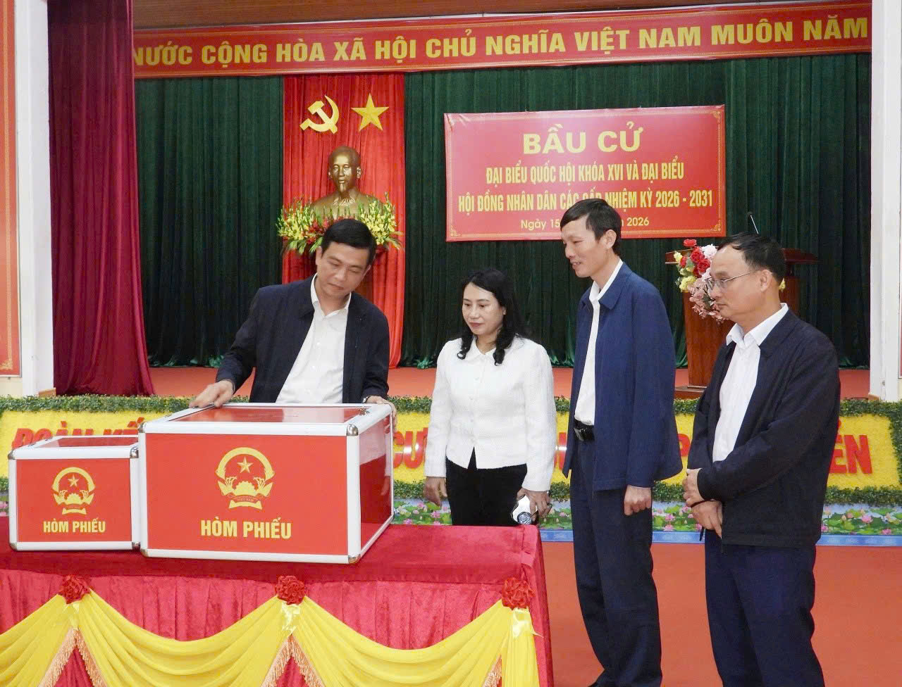 Qua kiểm tra thực tế tại các điểm bỏ phiếu, Đoàn đánh giá cao sự chủ động của xã trong công tác chuẩn bị: